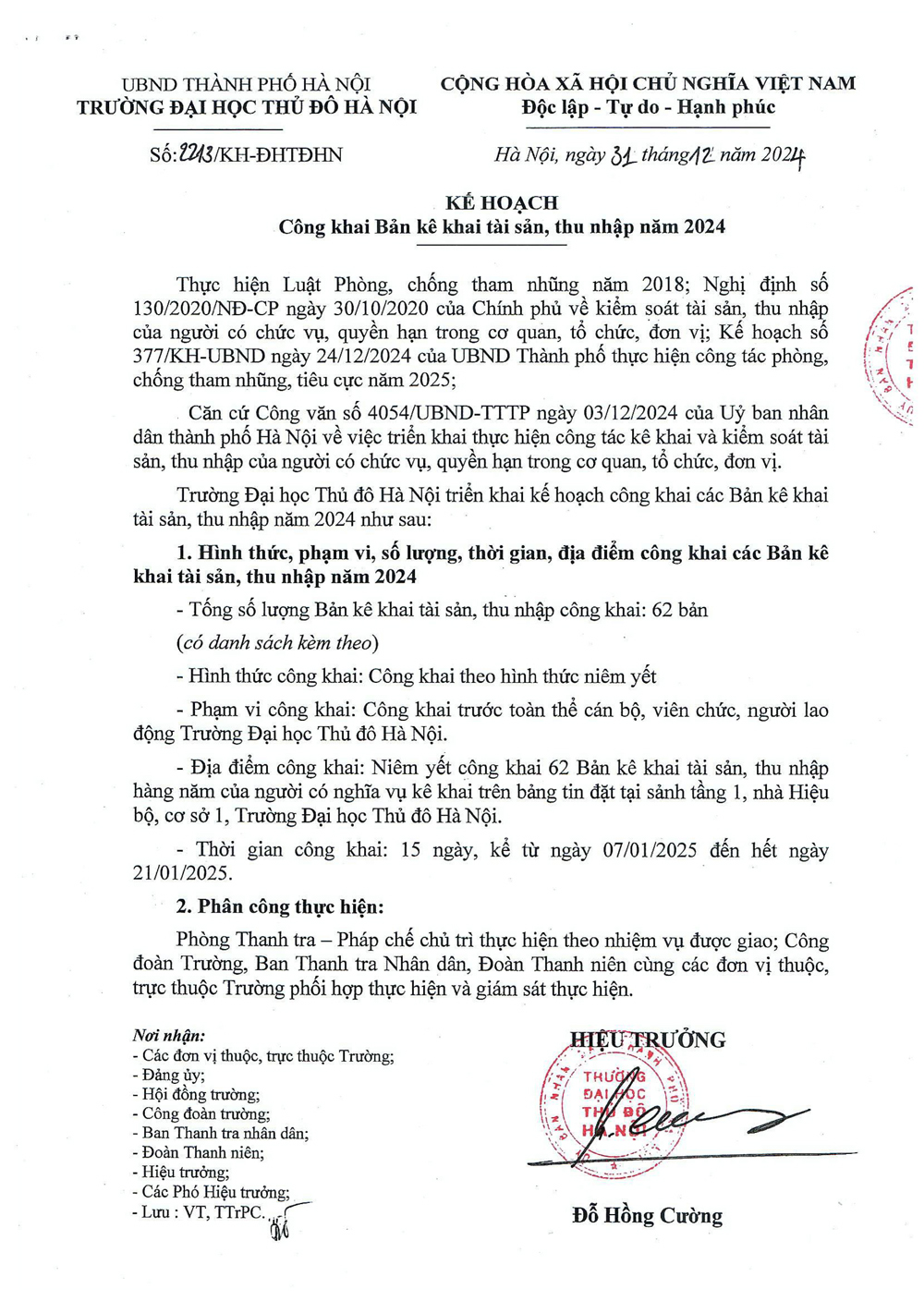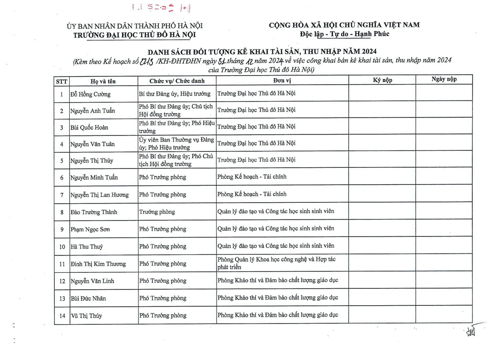 Kế hoạch công khai Bản kê khai tài sản, thu nhập năm 2024