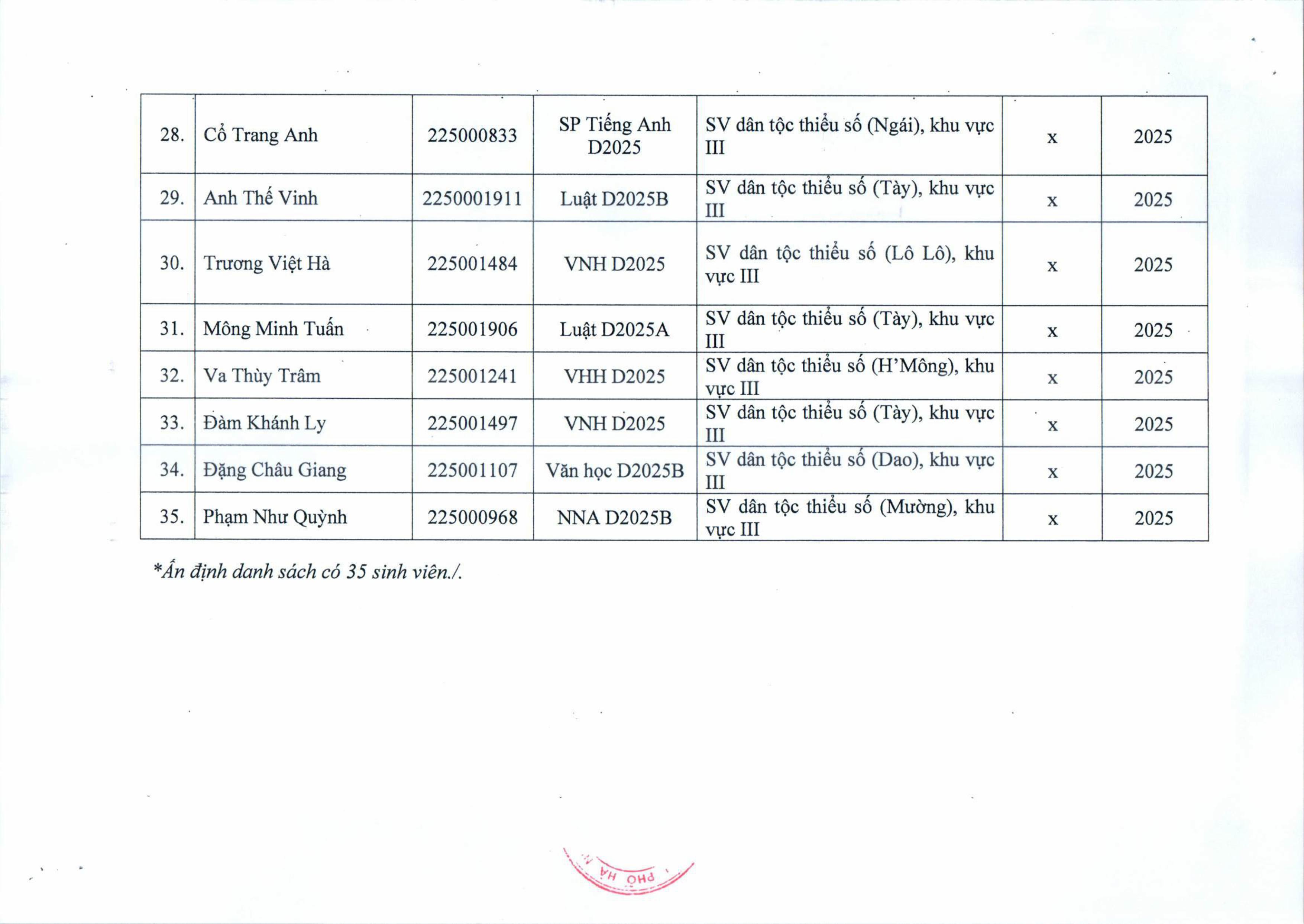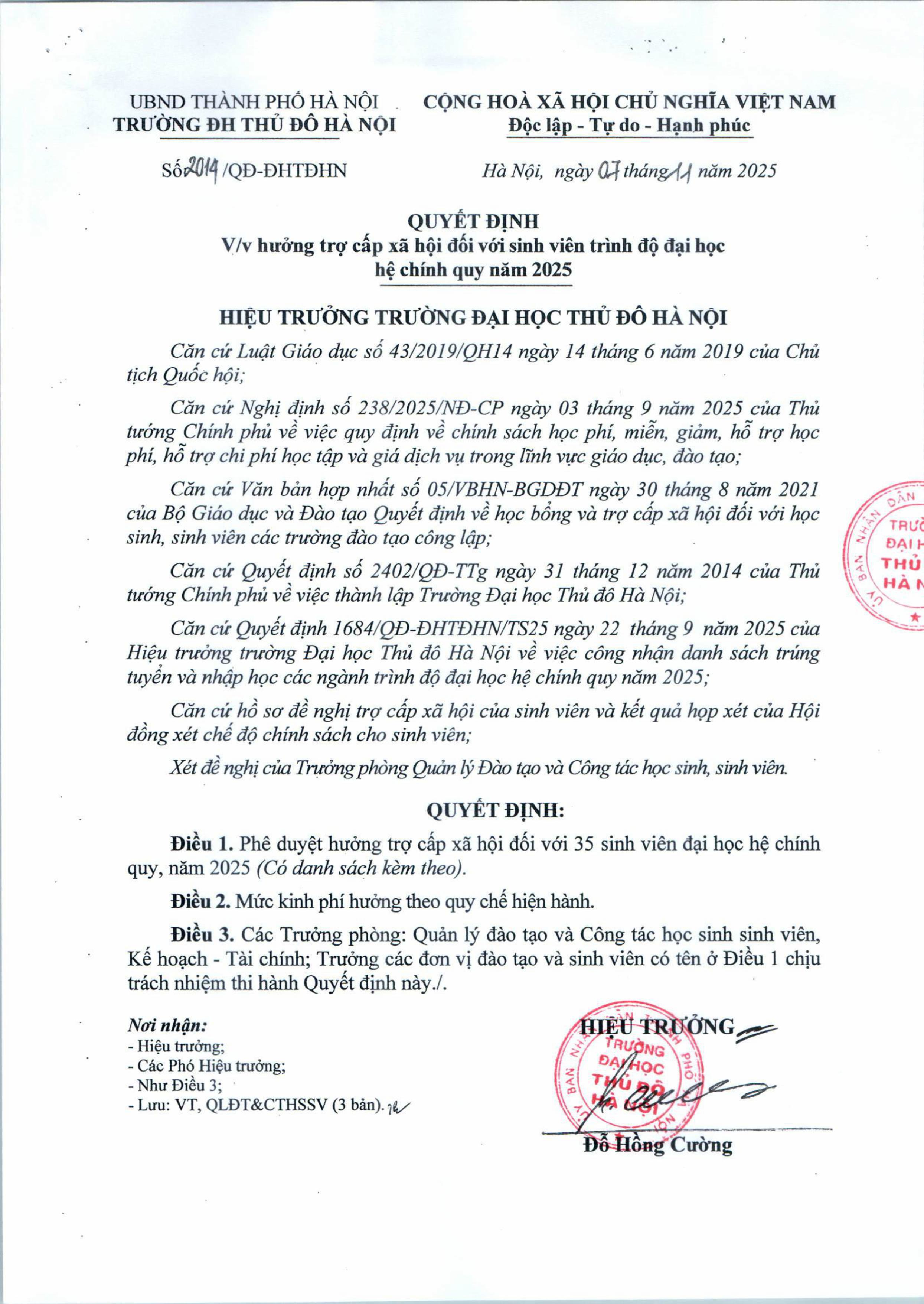 Quyết định hưởng trợ cấp xã hội đối với sinh viên trình độ đại học hệ chính quy năm 2025