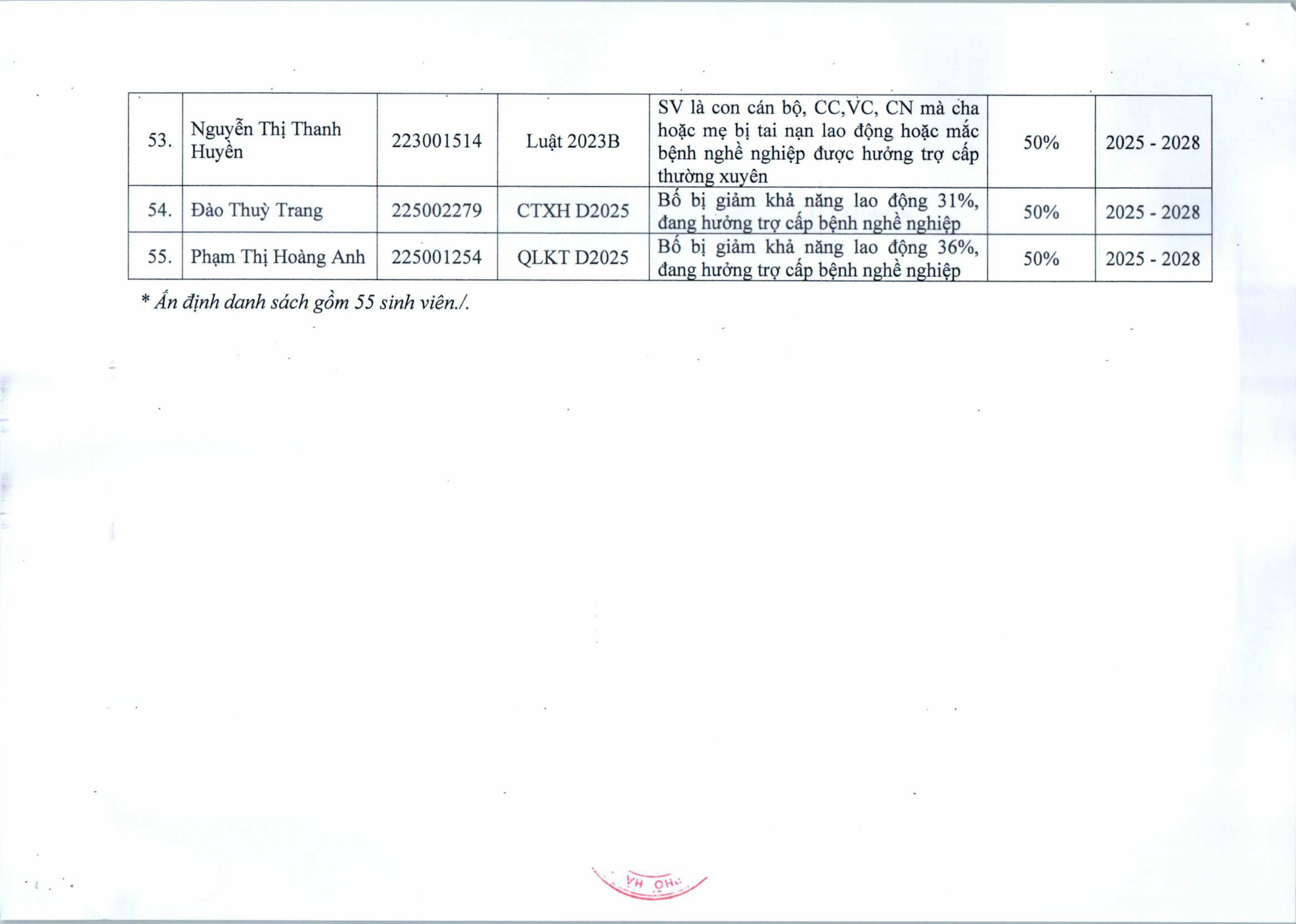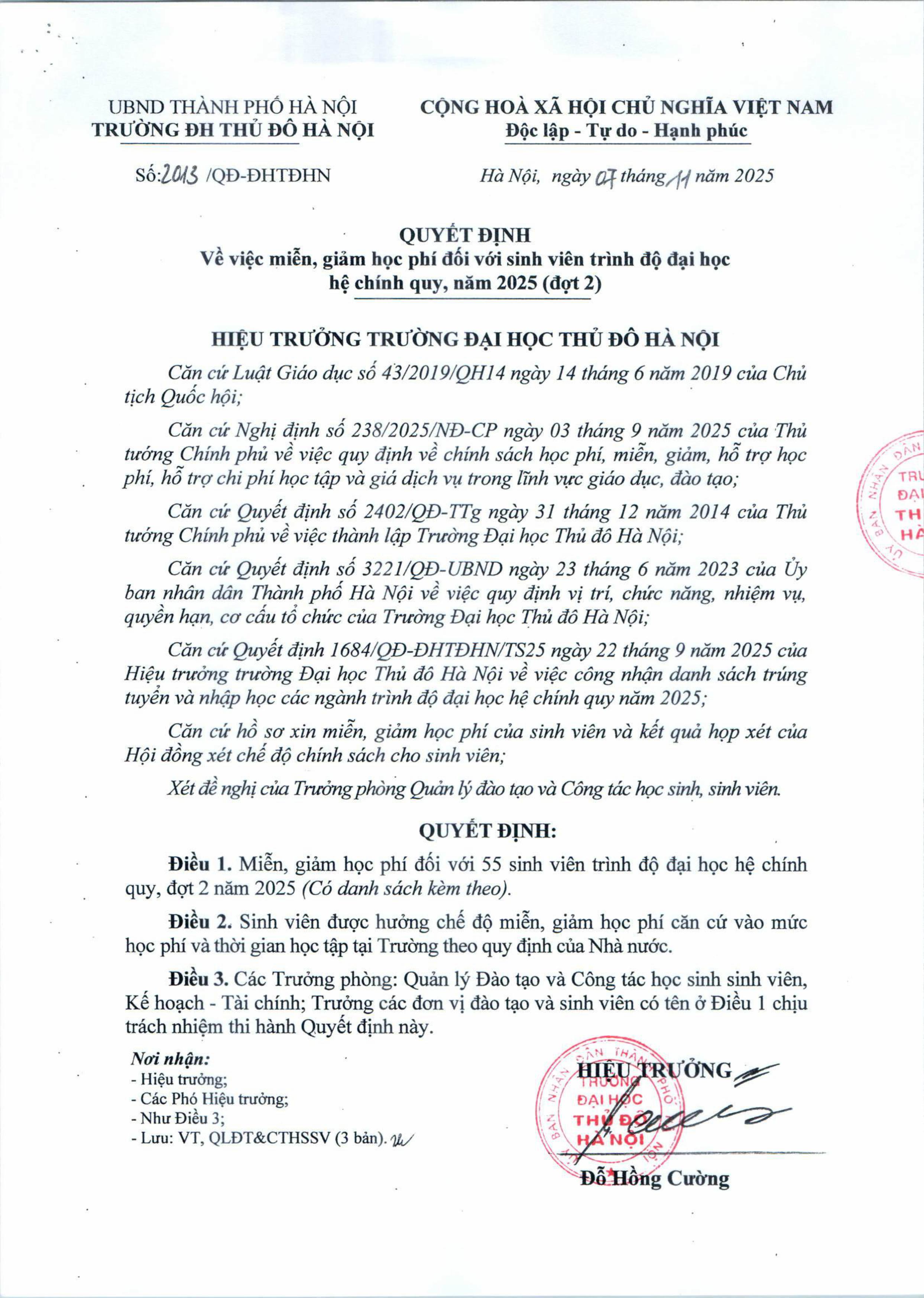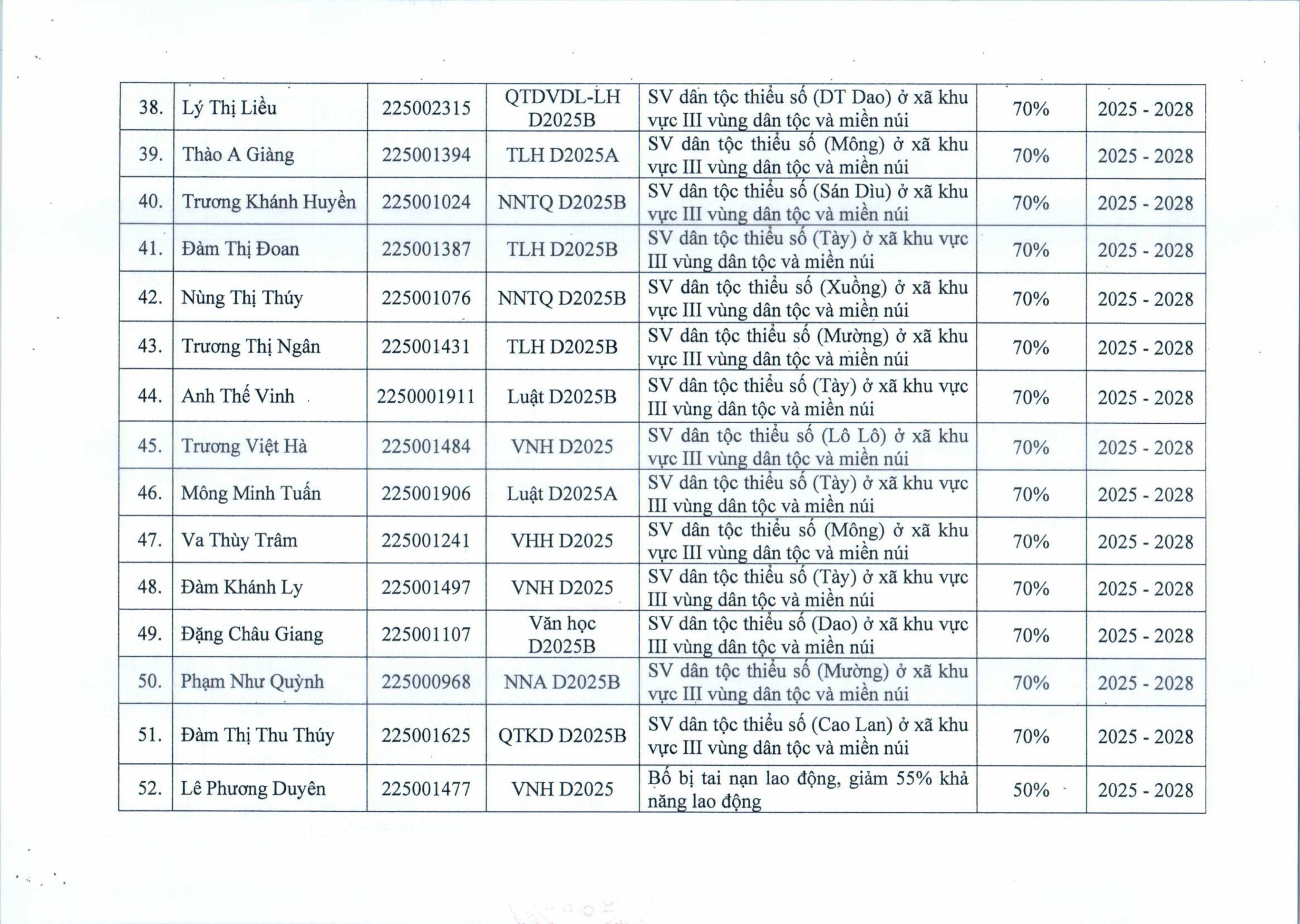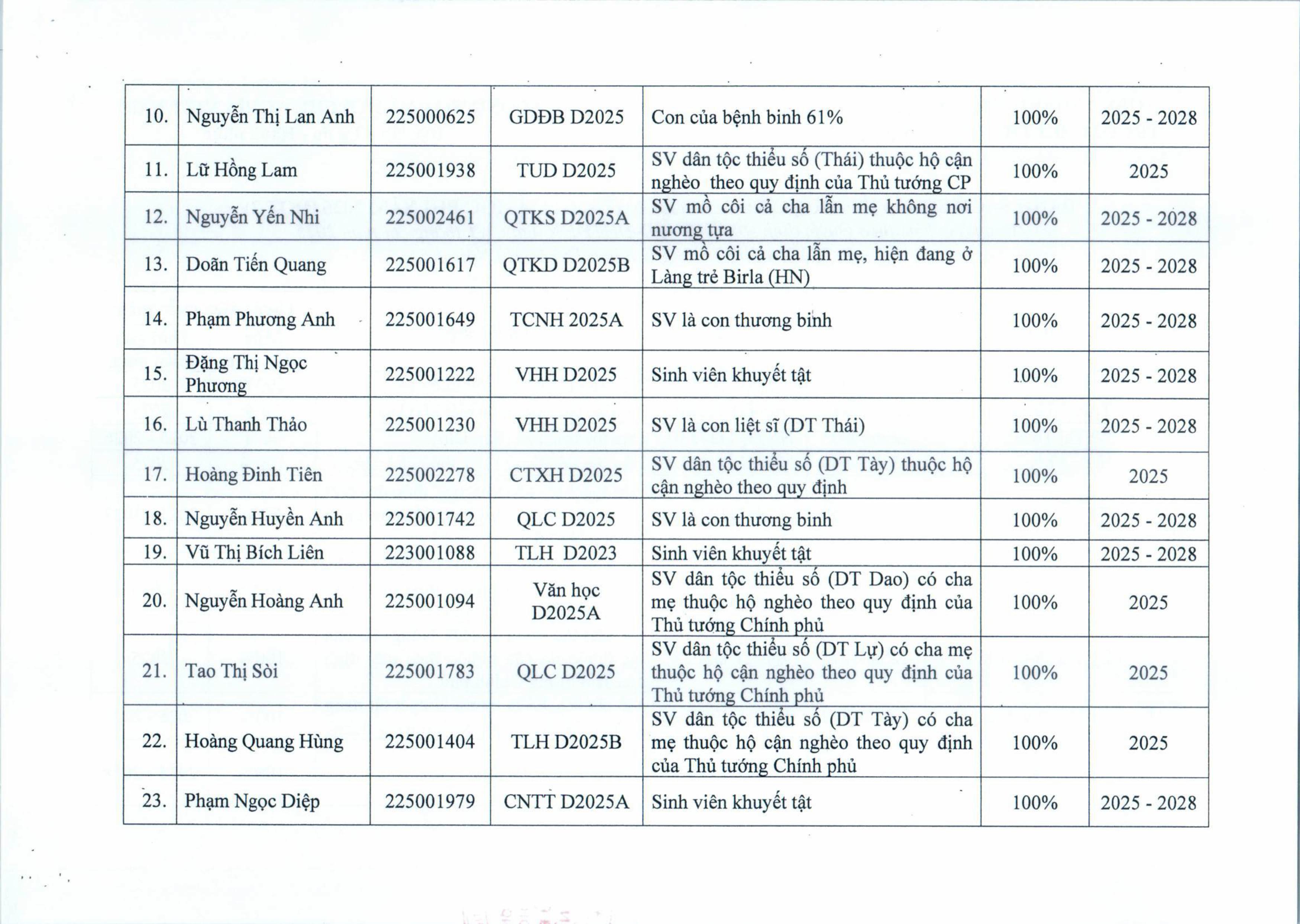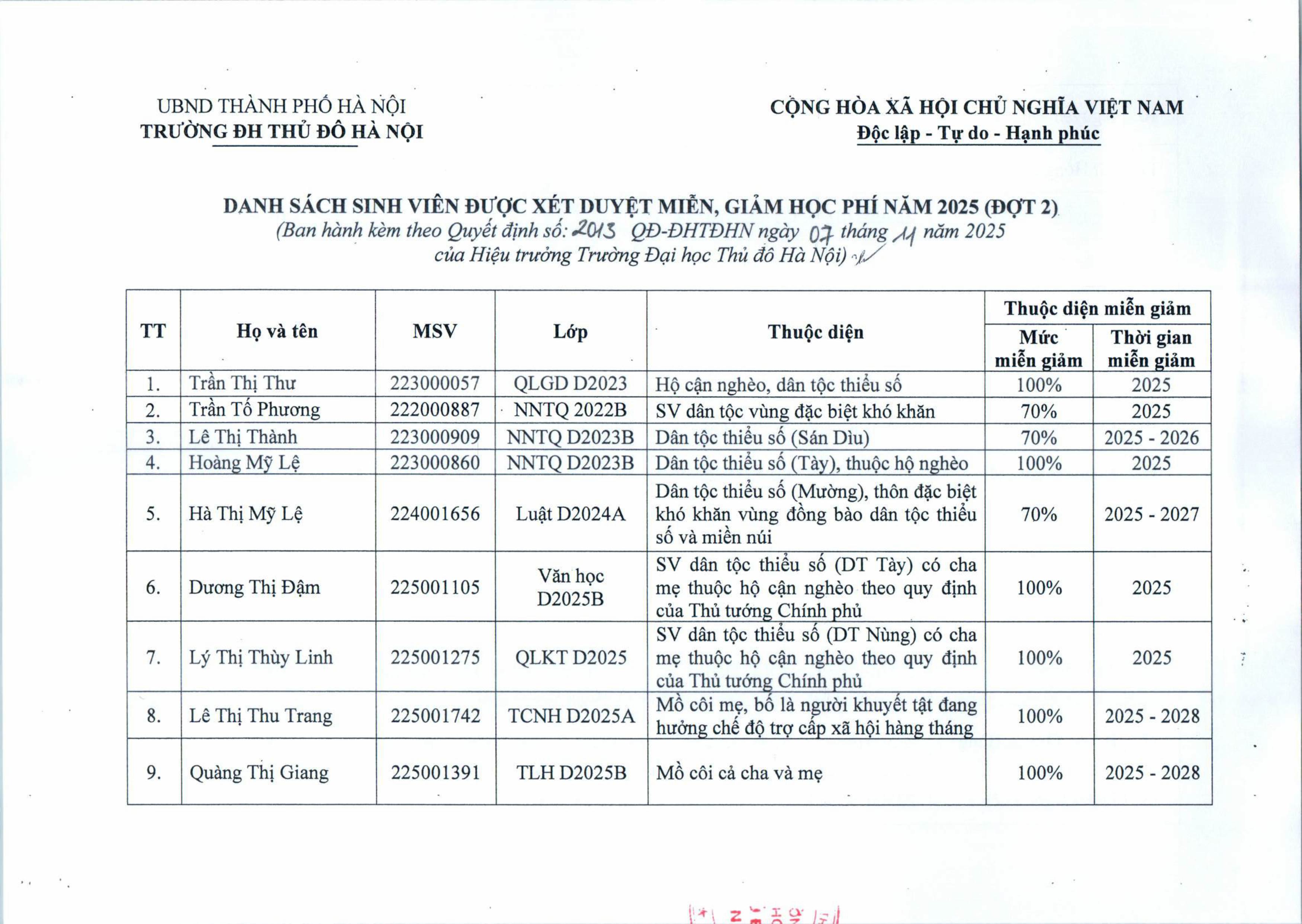 Quyết định miễn, giảm học phí đối với sinh viên trình độ đại học hệ chính quy, năm 2025 ( đợt 2 )