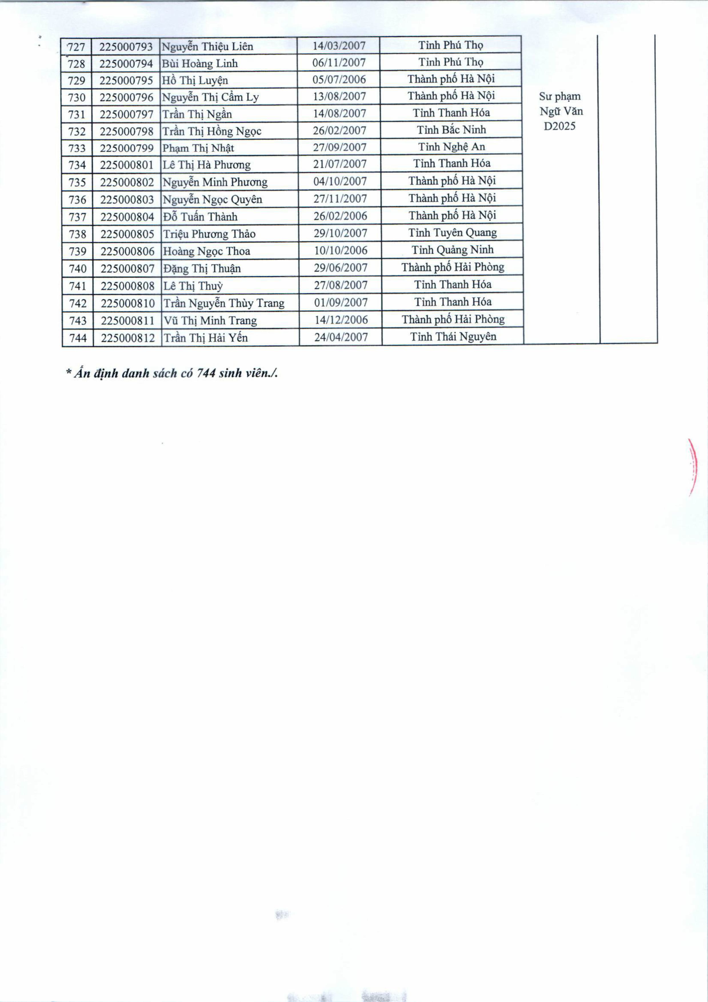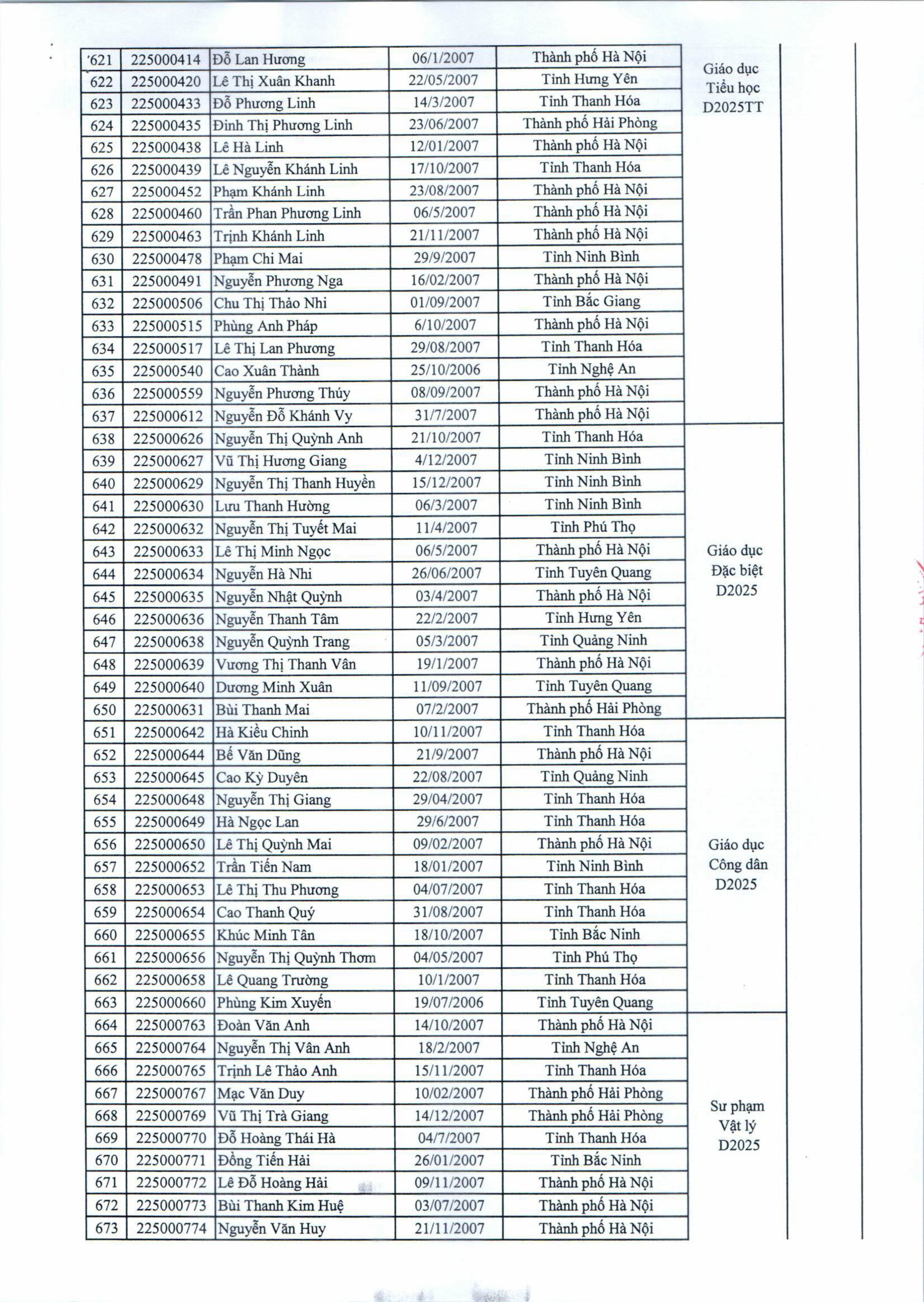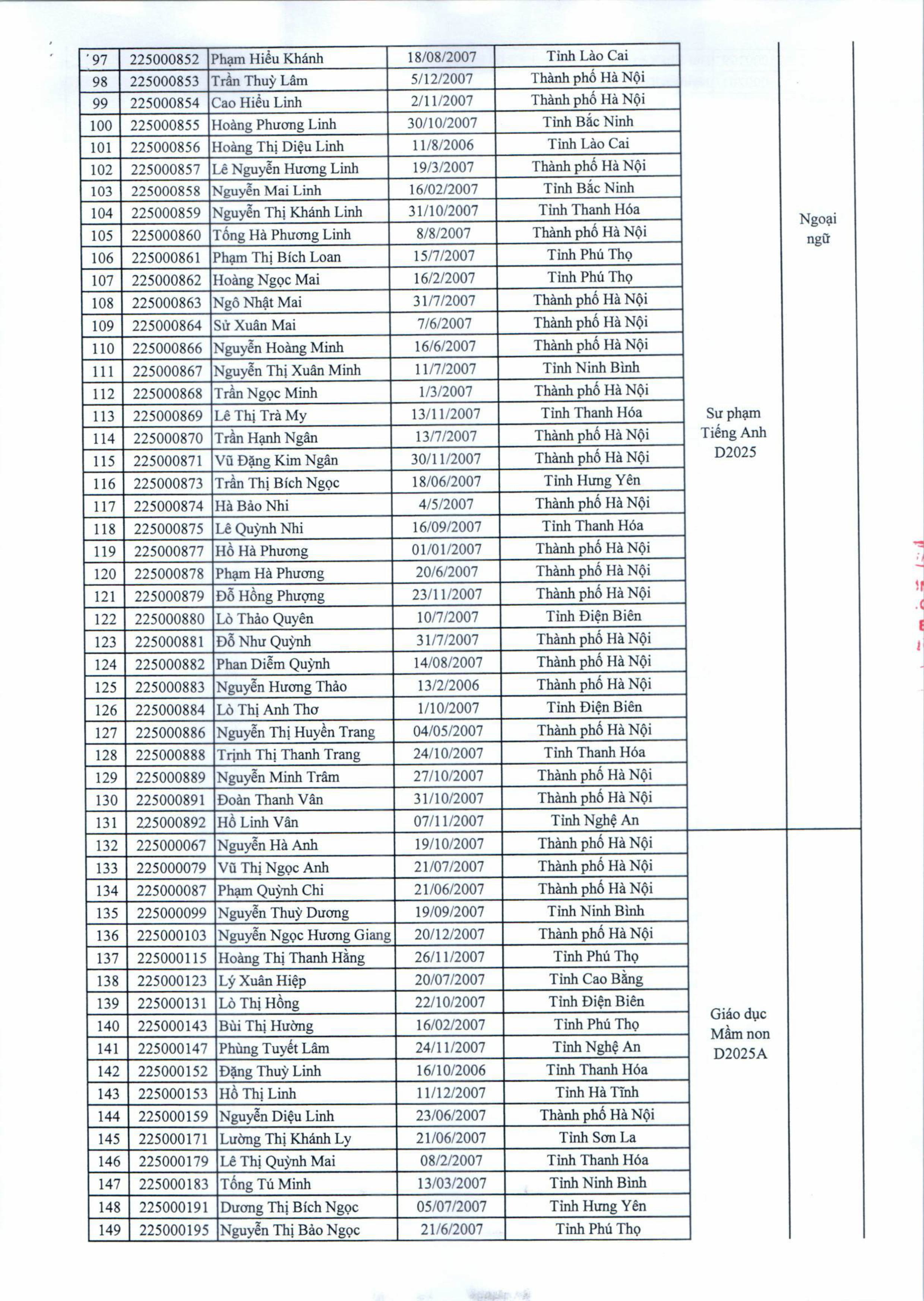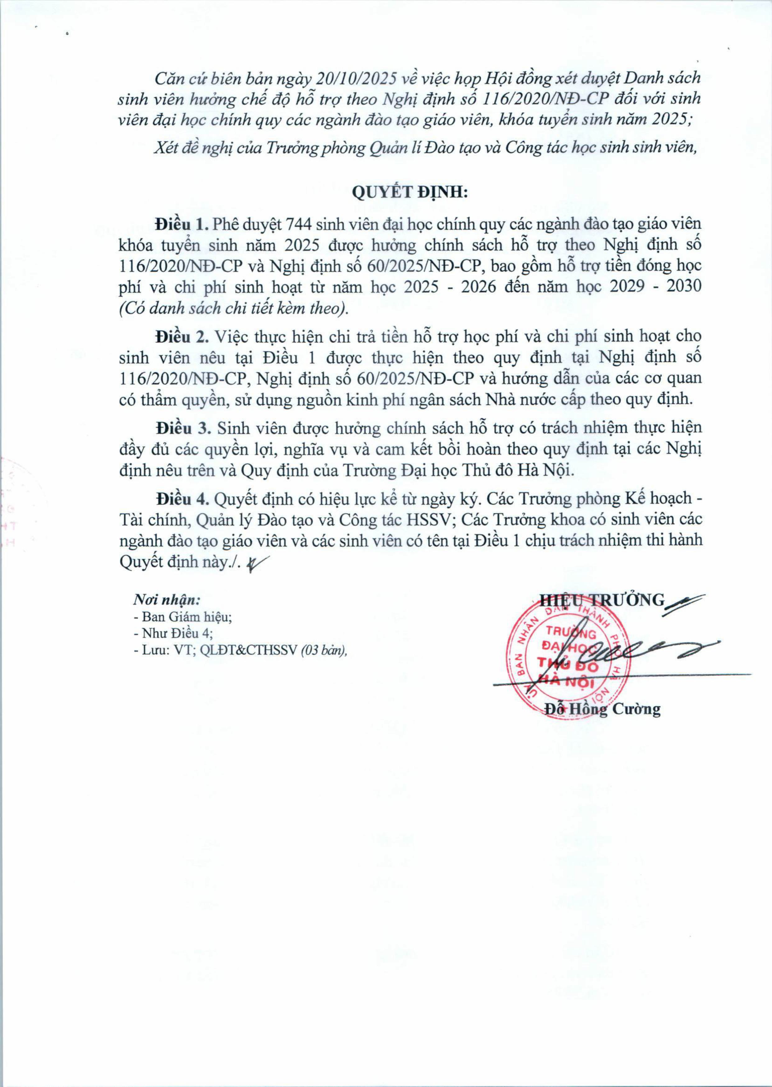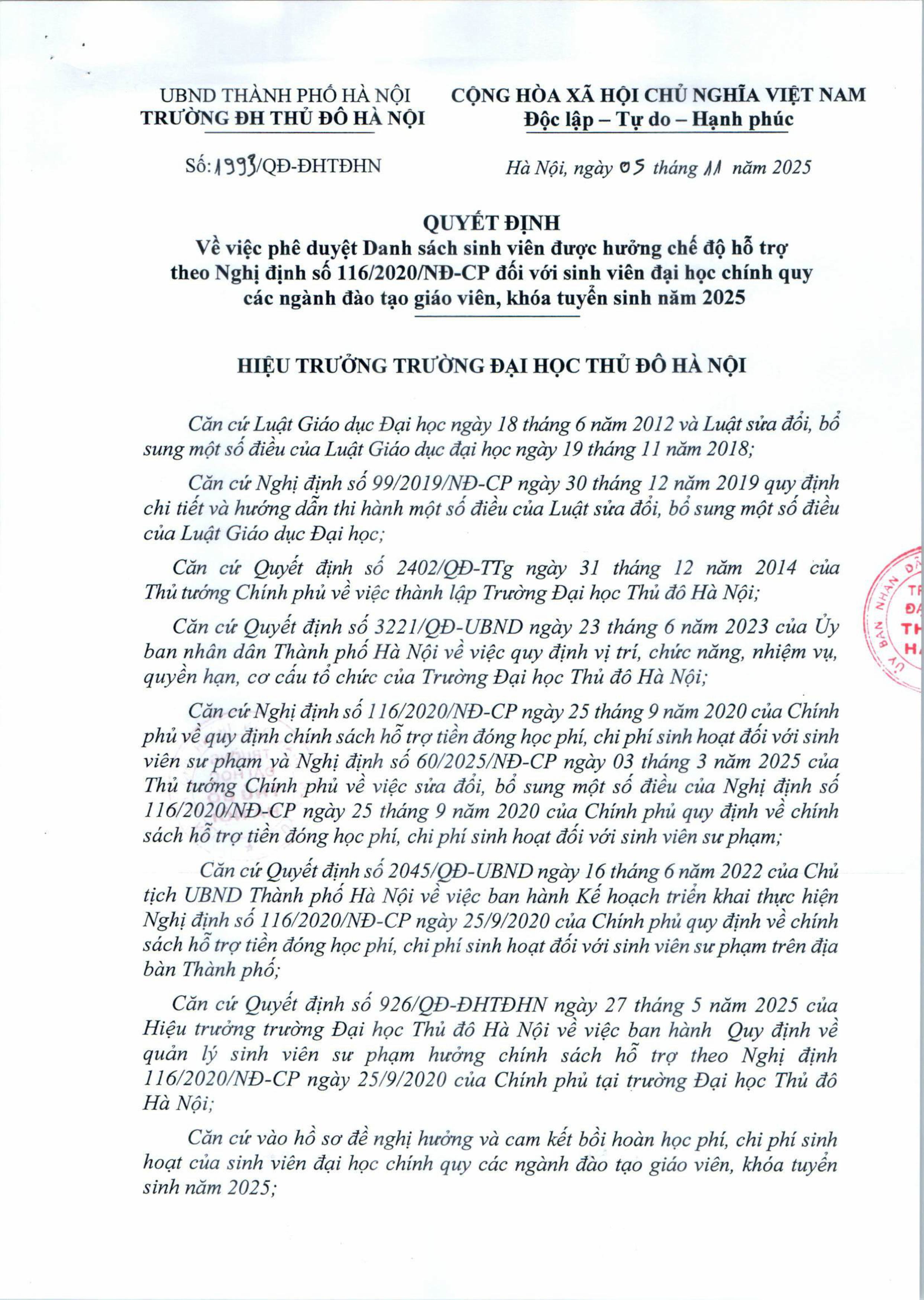 Quyết định phê duyệt Danh sách sinh viên được hưởng chế độ hỗ trợ theo Nghị định số 116/2020/NĐ-CP đối với sinh viên đại học chính quy các ngành đào tạo giáo viên, khóa tuyển sinh năm 2025