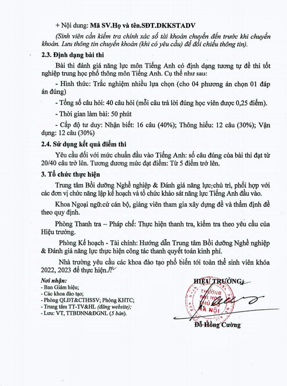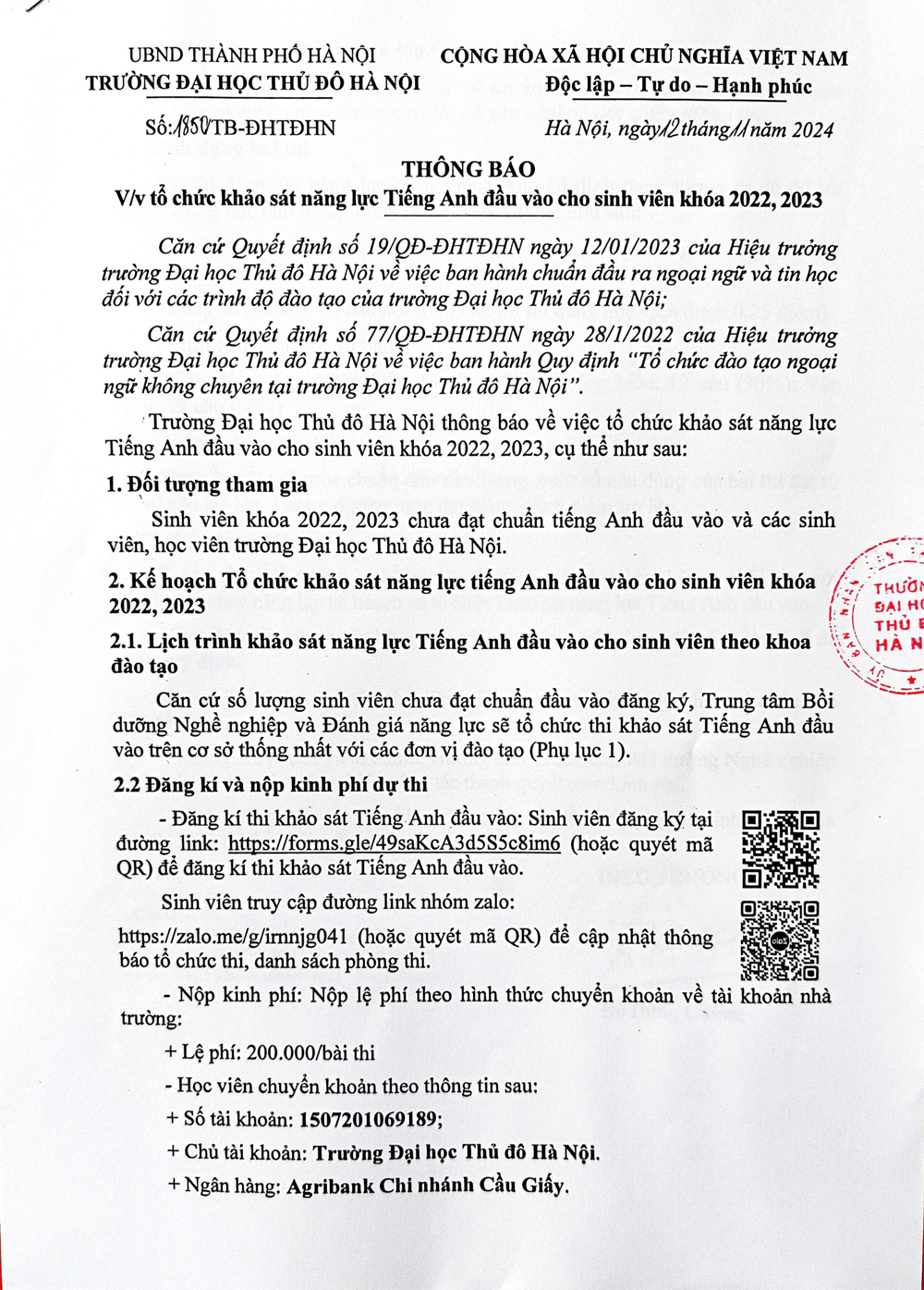 Thông báo tổ chức khảo sát năng lực Tiếng Anh đầu vào cho sinh viên khoá 2022, 2023