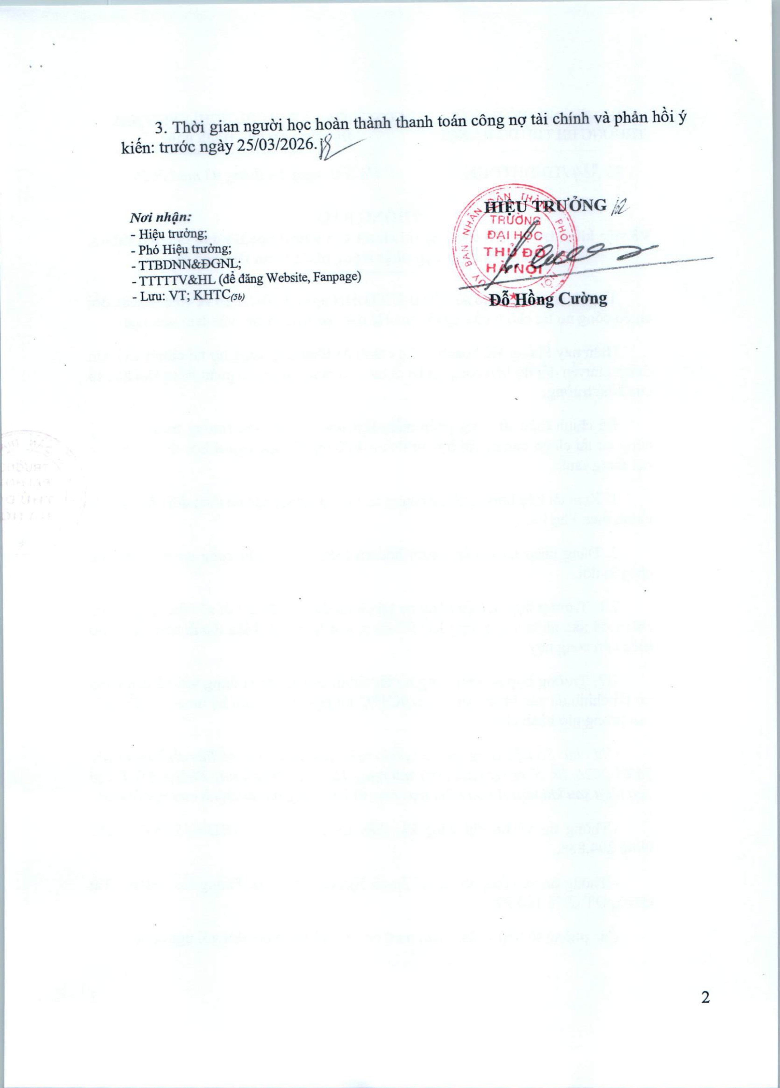 Thông báo rà soát, đối chiếu công nợ tài chính của người học Hệ đào tạo…