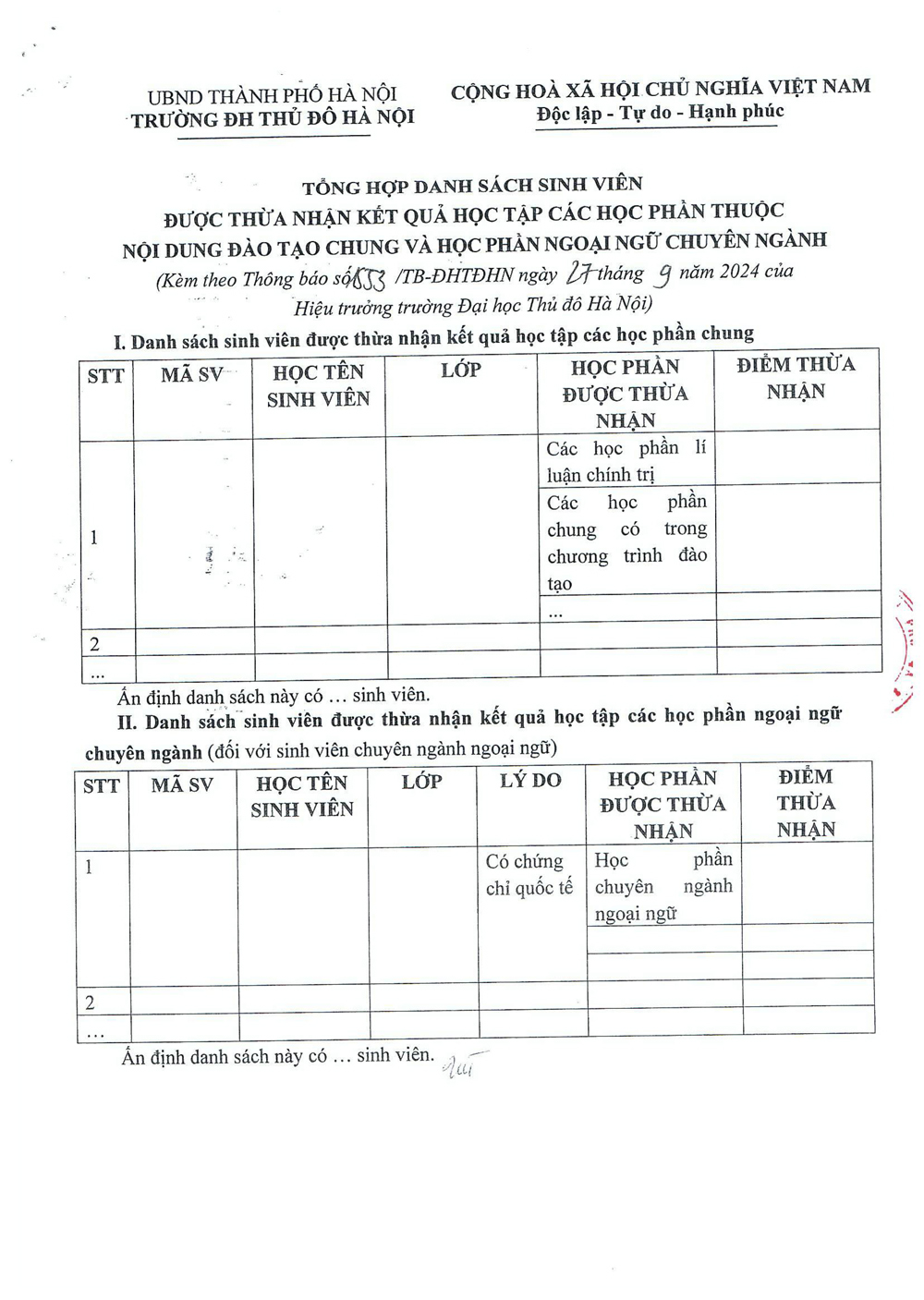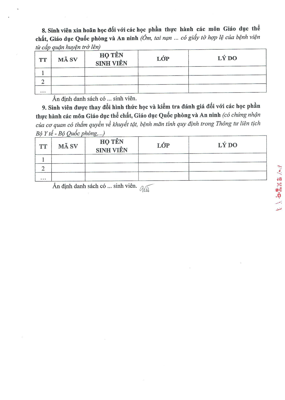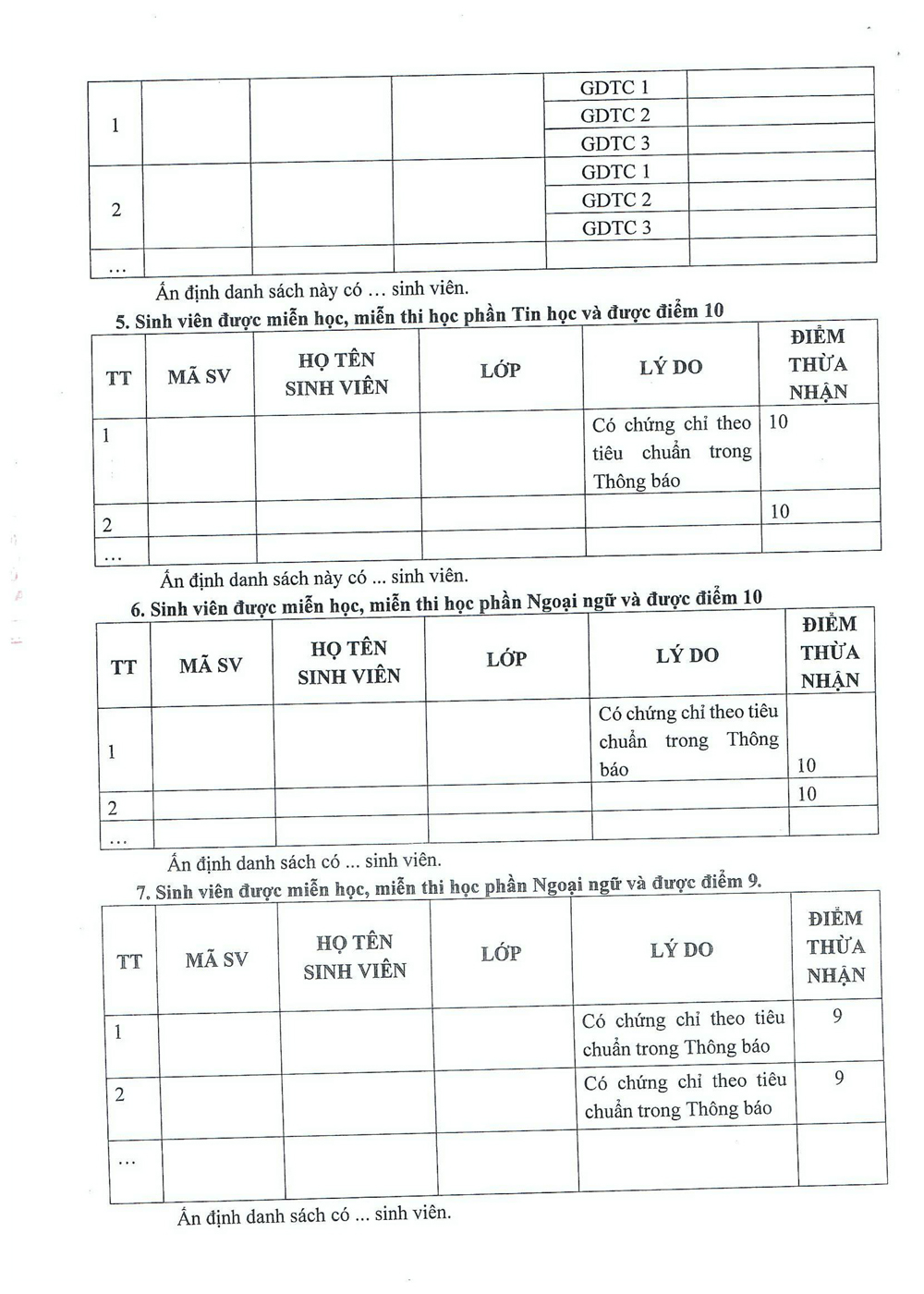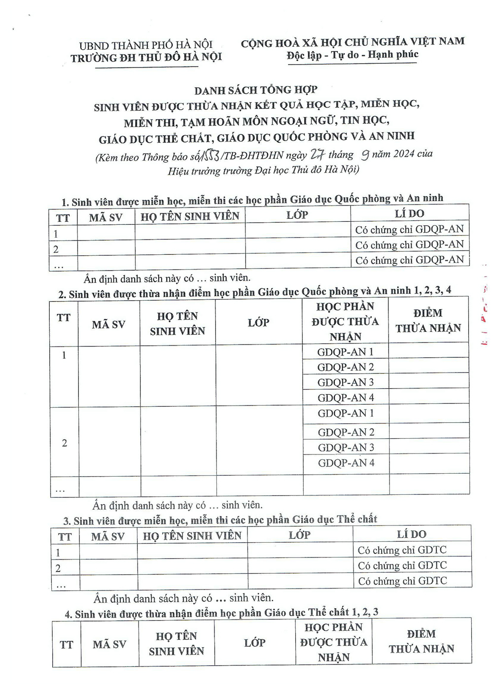 Thông báo nộp hồ sơ miễn học, miễn thi, tạm hoãn các môn Ngoại ngữ, Giáo dục quốc phòng và An ninh, tin học, Giáo dục Thể chất, các học phần thuộc nội dung đào tạo và học phần ngoại ngữ chuyên ngành năm học 2024-2025