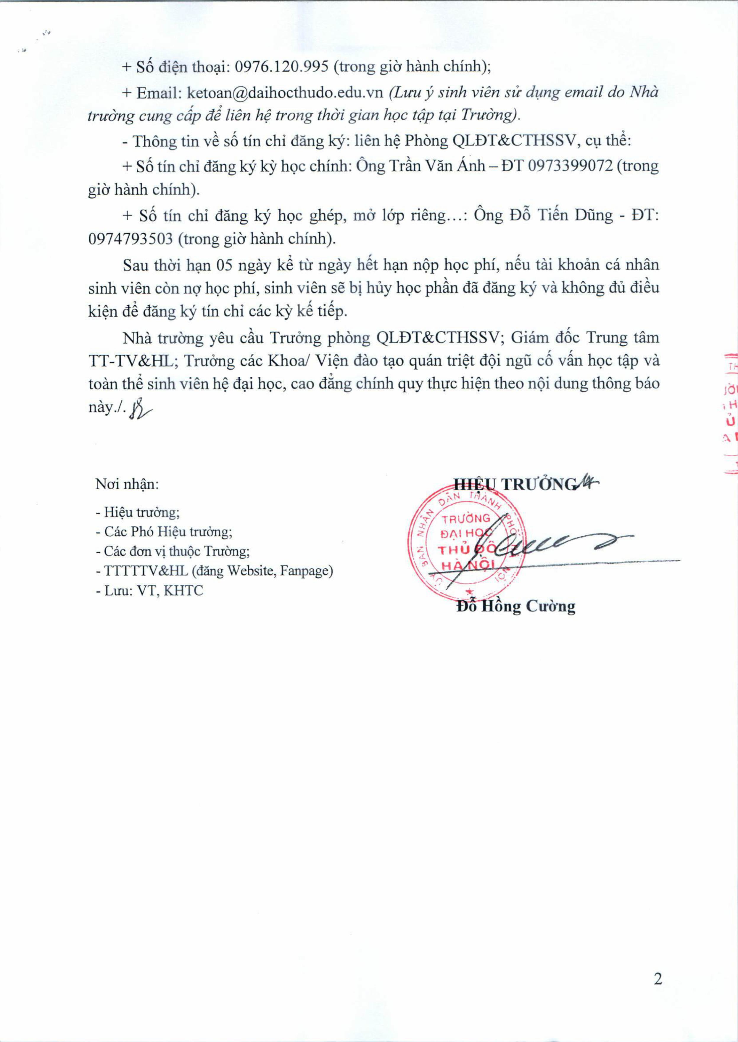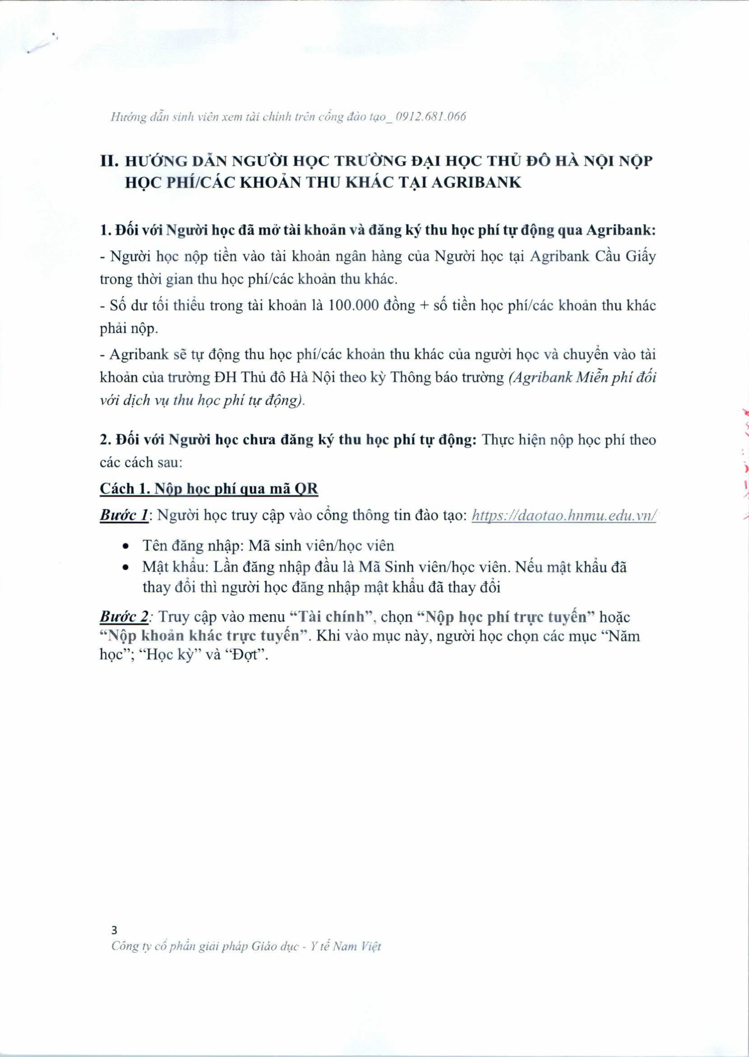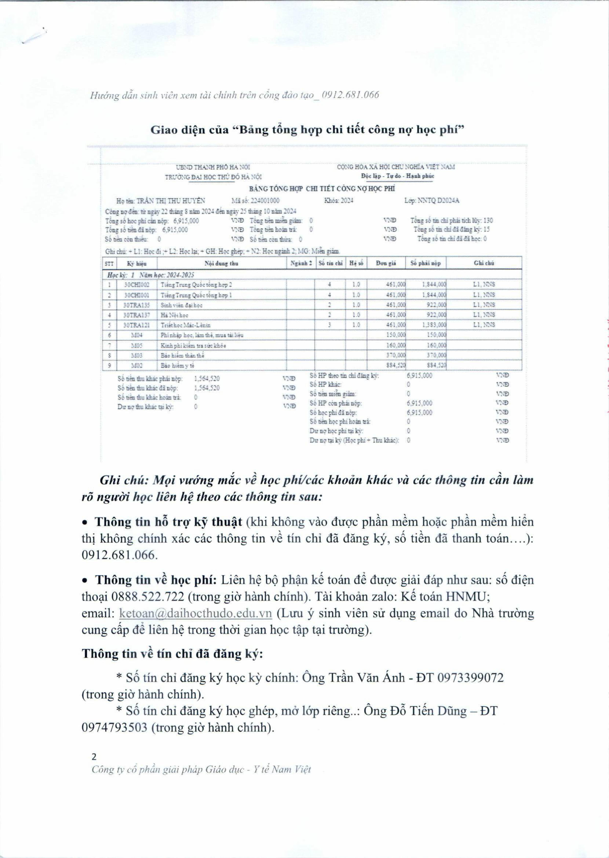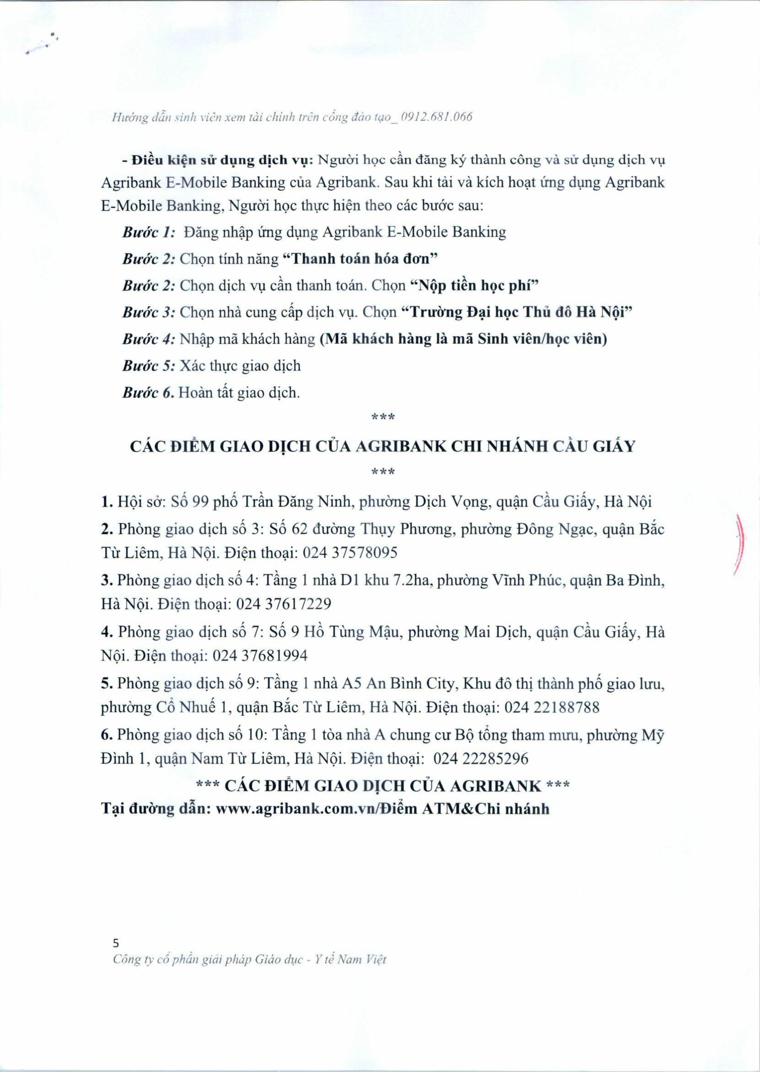 Hướng dẫn 187: Thực hiện xác nhận côn nợ người học Trường ĐH Thủ đô Hà Nội