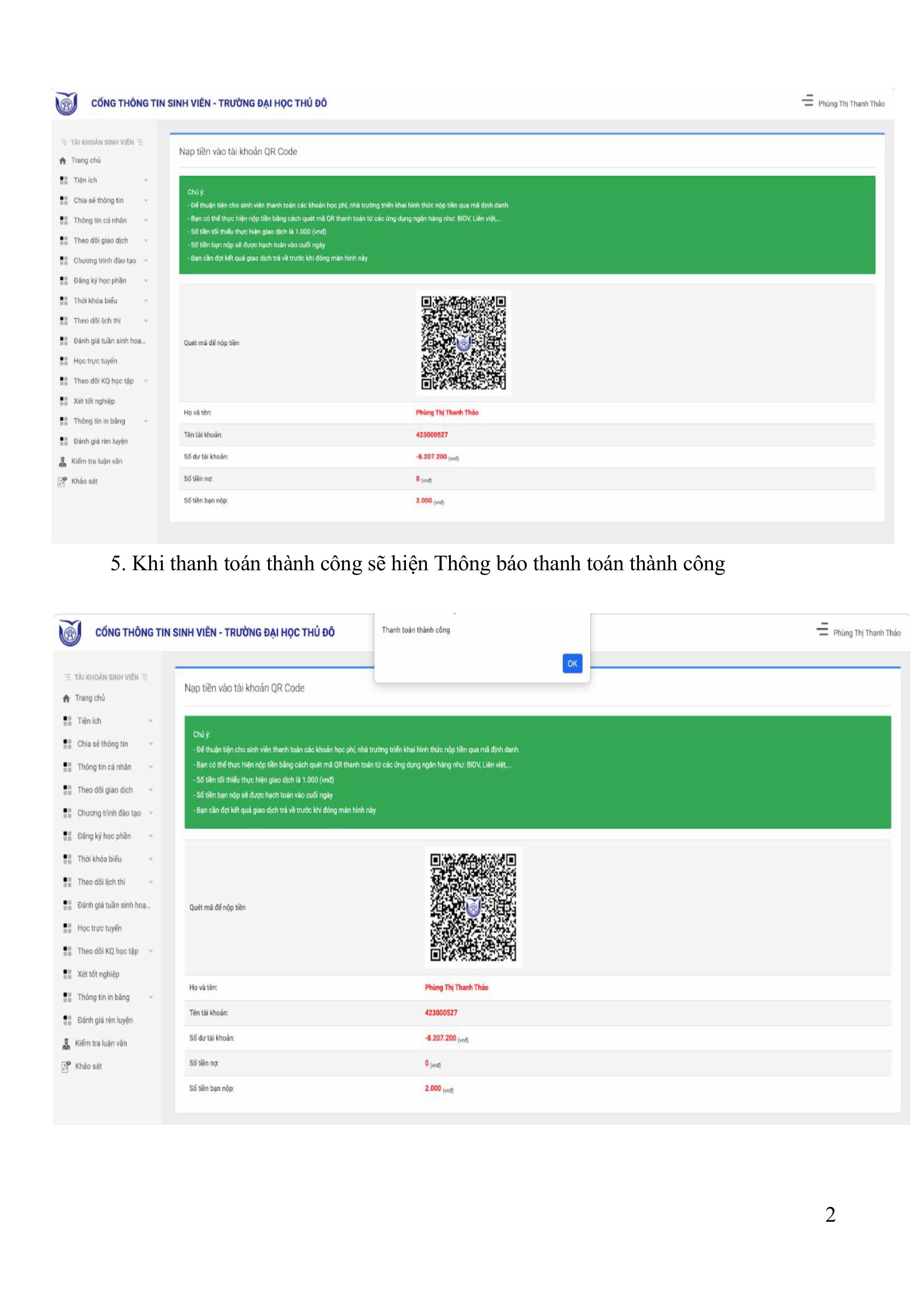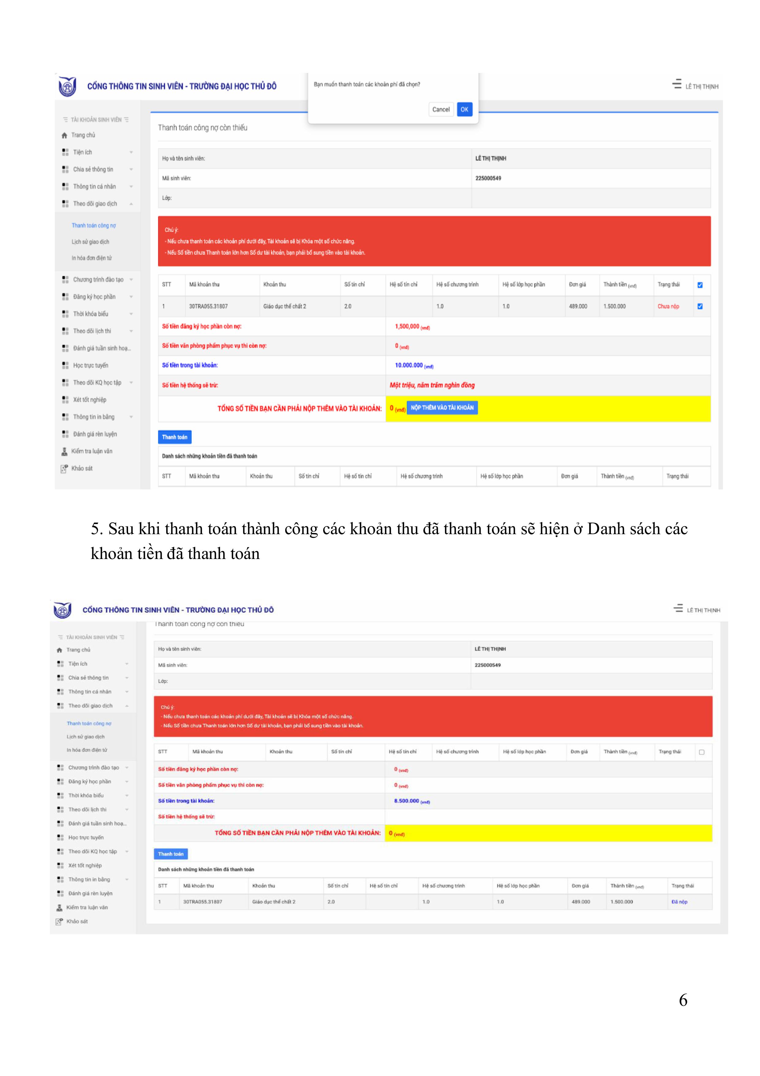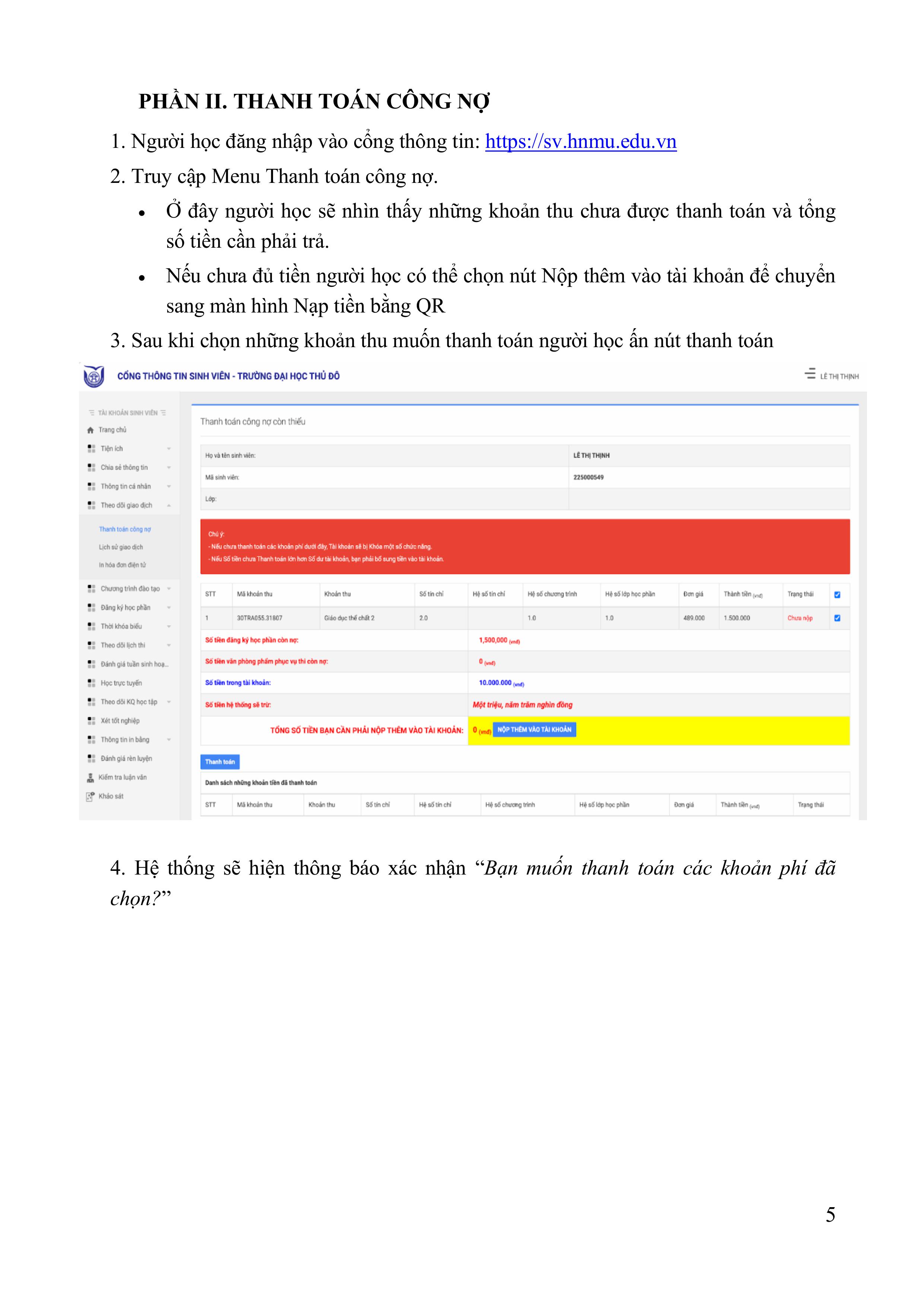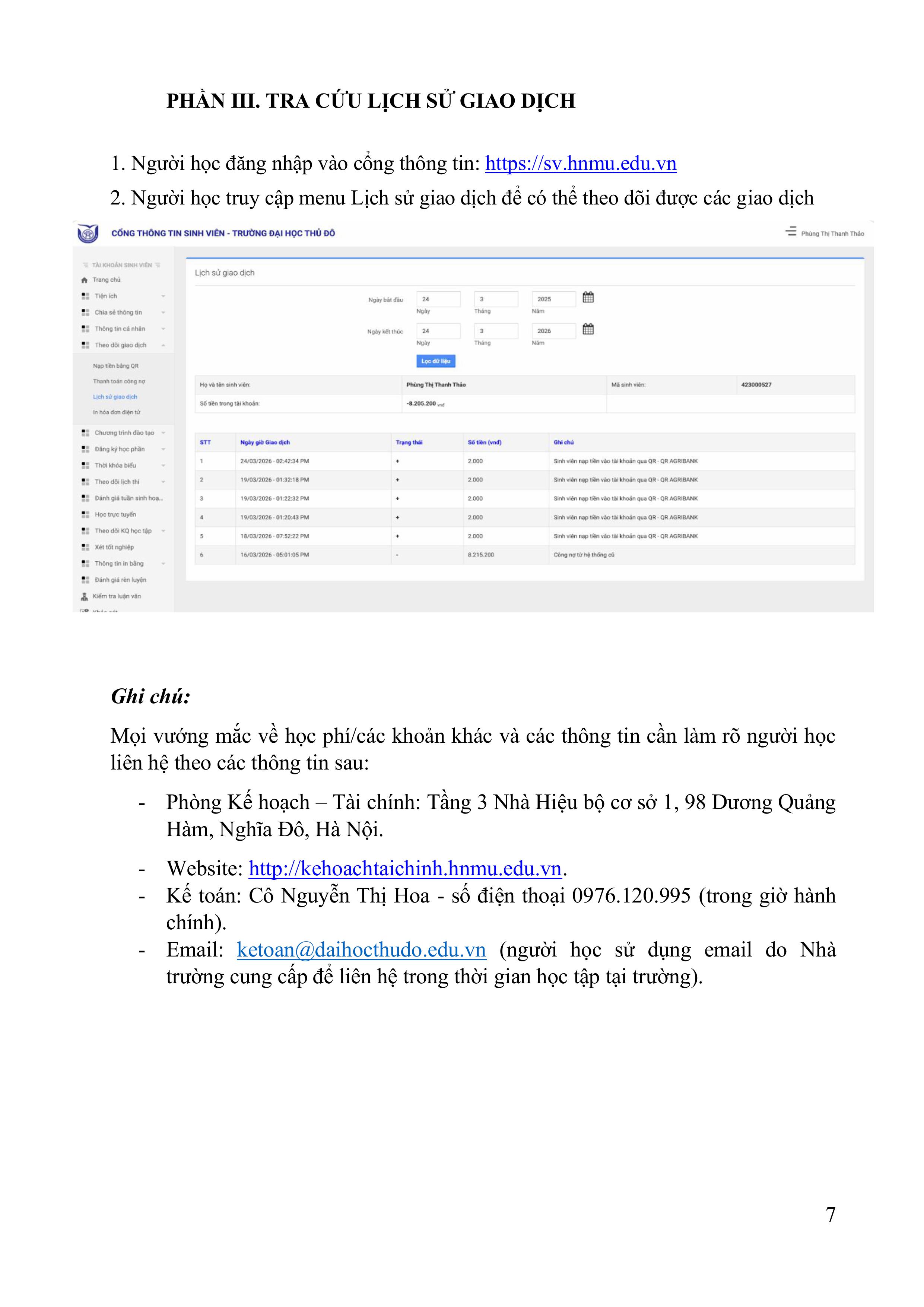 Thông báo về hình thức nộp tiền vào tài khoản, thanh toán công nợ và tra cứu công nợ của người học trên cổng thông tin người học