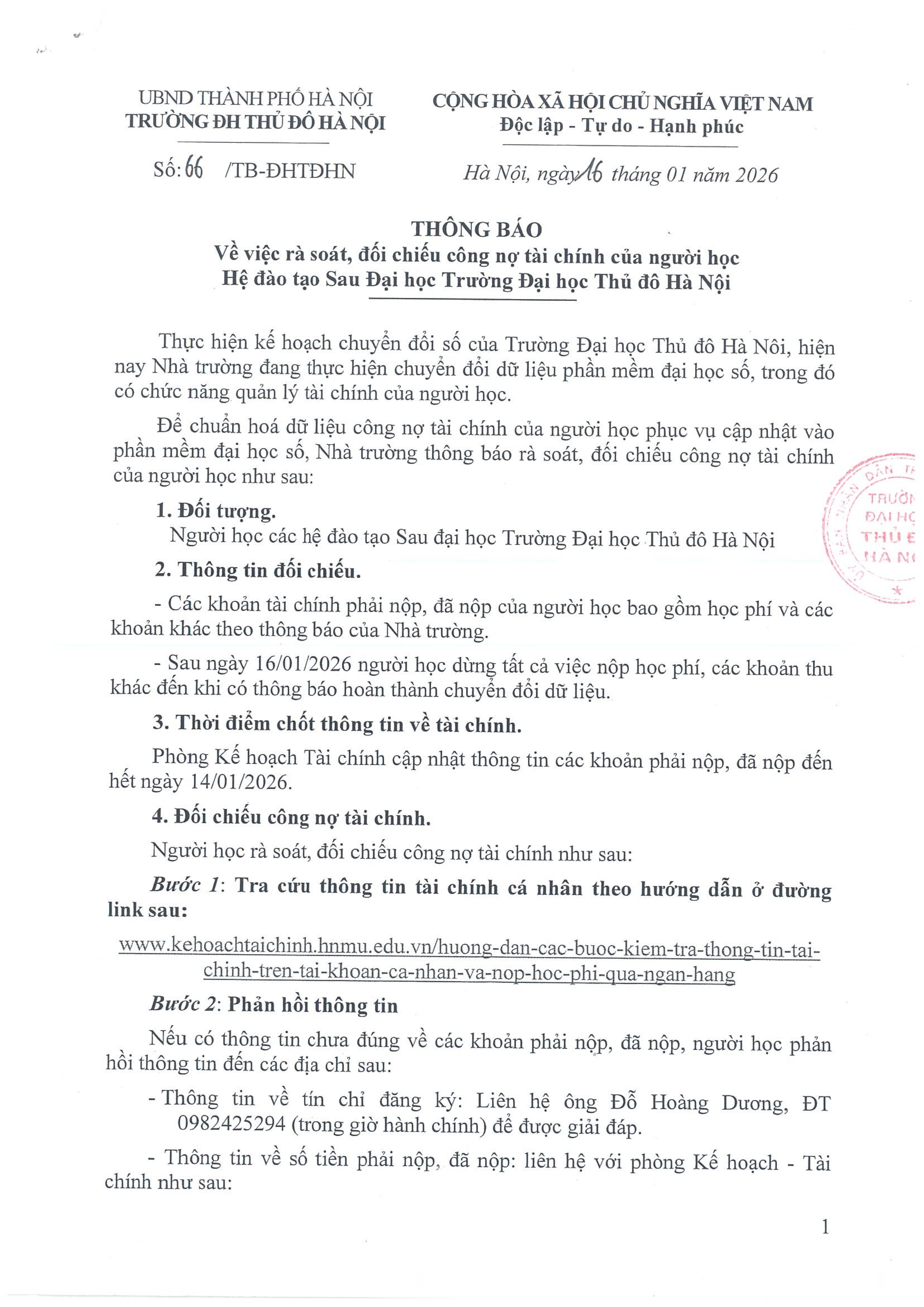 CÔNG NỢ HỌC PHÍ VÀ CÁC KHOẢN THU KHÁC ĐẾN NGÀY 14/01/2026 SAU ĐẠI HỌC 22/01/2026 15:48:16 | Số lần xem: 5 1 phút